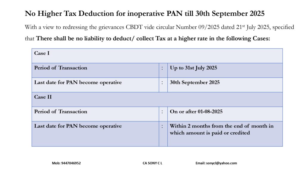 No Higher Tax Deduction for inoperative PAN till 30th September 2025